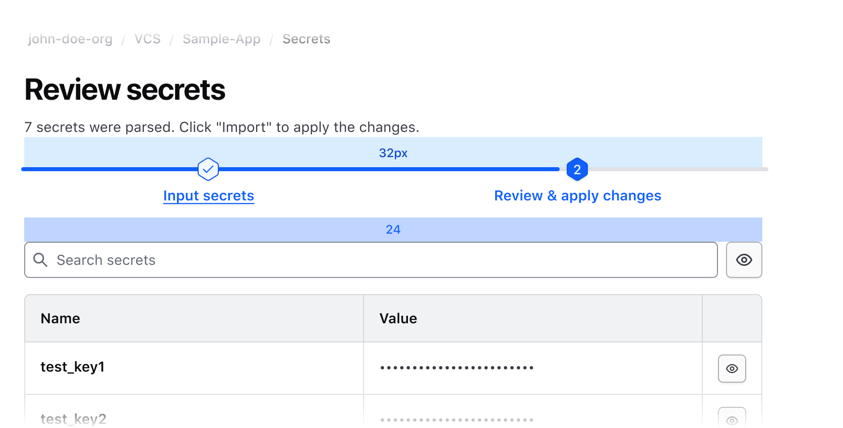 There should be 32px of spacing above the Stepper Nav and 24px below.